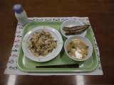 今日の献立)五目ごはん・牛乳・ししゃものから揚げ・みそ汁 みそ汁に欠かせないも...