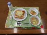 今日の献立)ピザトースト・牛乳・ポトフ。野菜のイタリアンドレッシングかけ 「ピ...