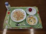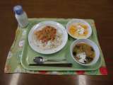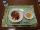 今日の献立)スパゲティーなすミートソース・牛乳・じゃがいものハニーサラダ 「な...