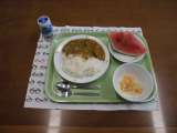 今日の献立)夏野菜カレーライス・ジョア・キャベツサラダ・果物(すいか) 今日の...