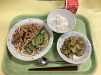 今日の献立五目かけうどん のりポテト フルーツヨーグルト 牛乳今日は東京都八王子...