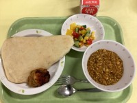今日の献立ナン キーマカレー タンドリーチキン トロピカルサラダ 牛乳