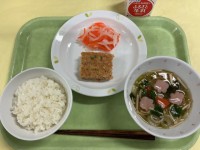 今日の献立小豆ごはん 卵焼き 生揚げの煮浸し りんご 牛乳今日は小正月の日です。小正月には小豆粥を食べて邪気払いをし、一年の健康を祈ります。給食では小豆粥のかわりに小豆ごはんを炊きました。