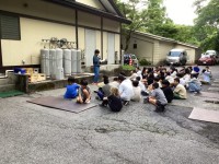 本日の活動内容や、気をつけることについて、担当の先生が話をしていました。みんな集...