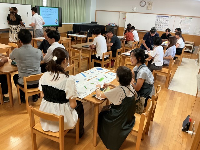 授業の組み立て方や、アクティビティーのバリエーションなど、実際の活動を通して教員も学んでいました。