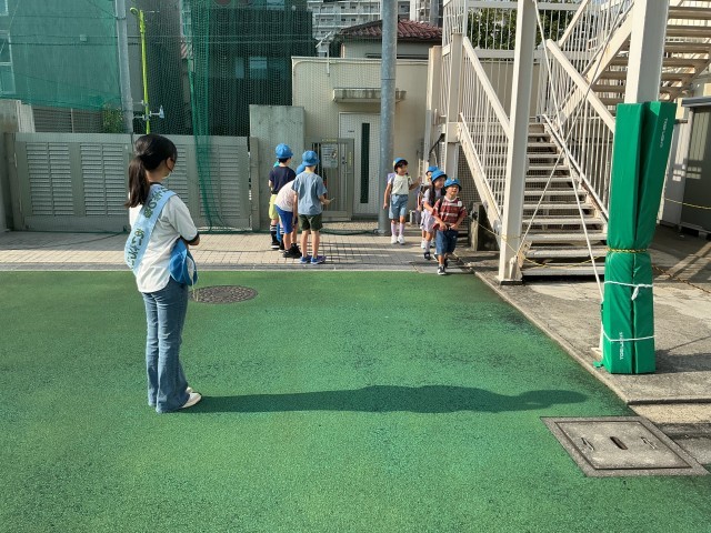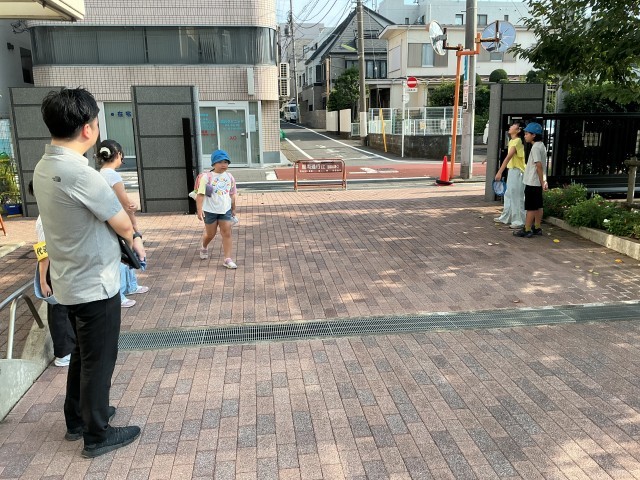 今朝は4年生が担当しました。少数精鋭で、あいさつしてくれていました。