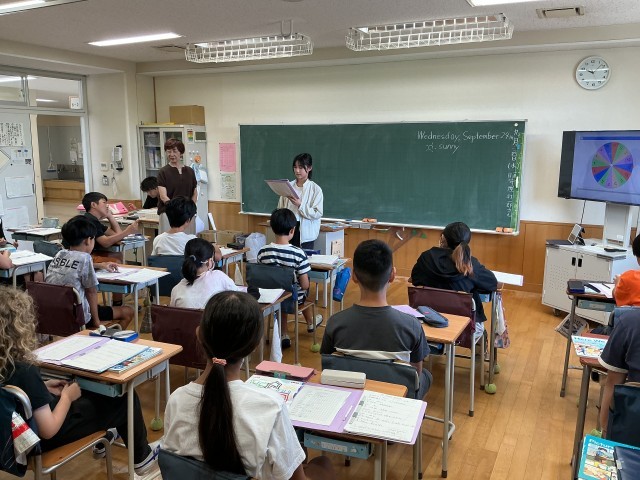 外国語の授業では、学んだことを使って発表を行っていました。