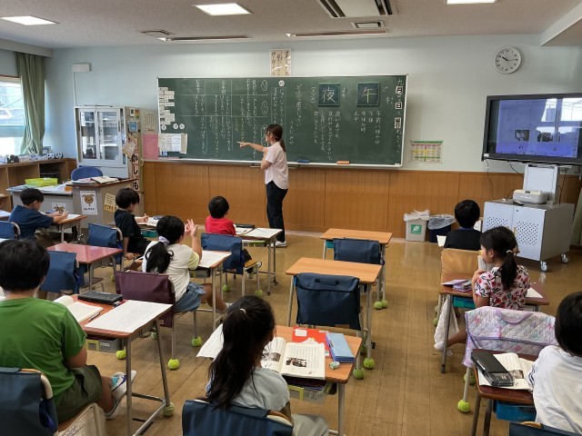 国語の授業では、獣医の仕事についてワークシートにまとめていました。