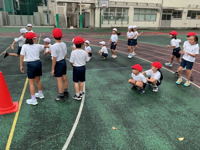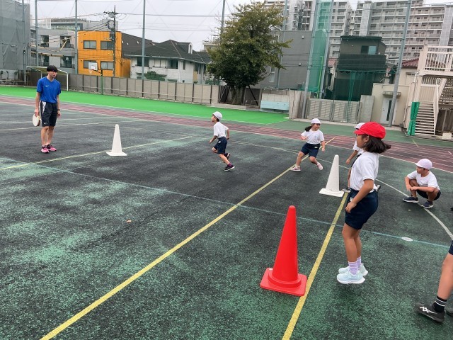 リングバトンの渡し方やもらい方を教わったり、八の字で走るコースを学んだり、たくさんの活動が盛り込まれていました。