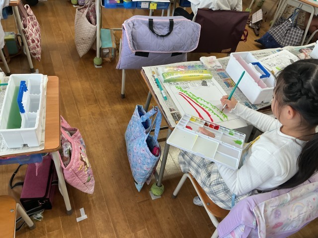 またパレットや水入れの使い方や、片付けの仕方なども、指示通り取り組めていました。