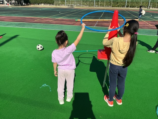体育倉庫にある用具を組み合わせて影を作ります。