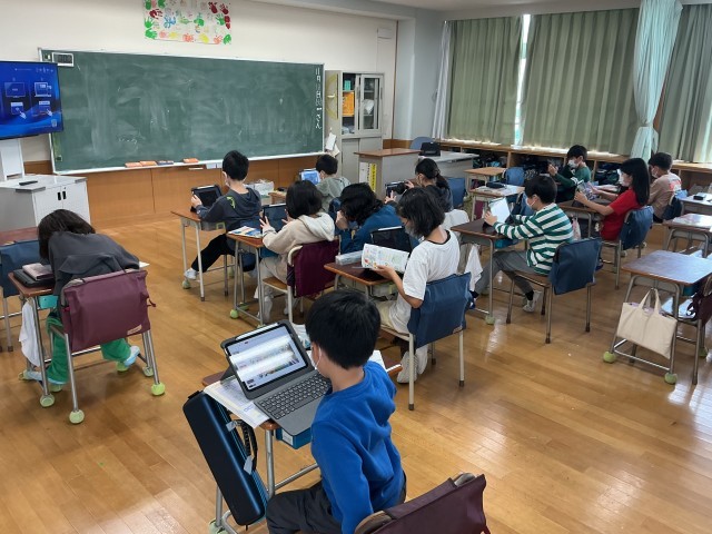タブレットで、日本の年中行事について調べ、発表用の資料を作っていました。
