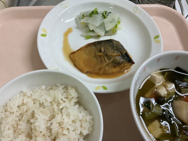 献立 むぎごはん 鯖のみそ煮 かぶのゆずかけ 豆腐汁 牛乳