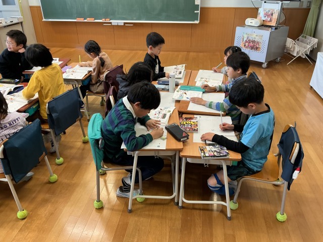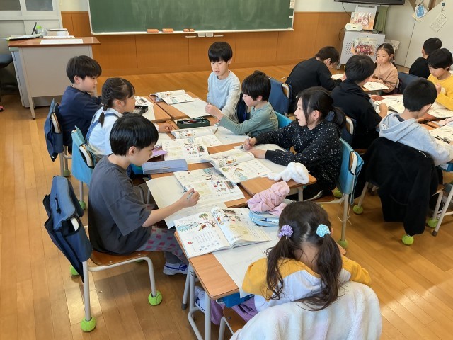 各グループとも、思いついた言葉を教え合いながら協力して調べていました。