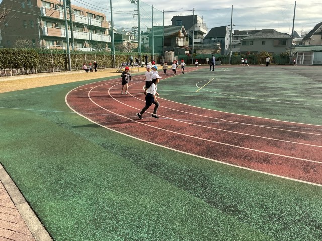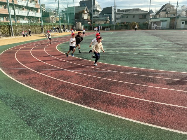 寒い中、校庭トラック2周という一年生にとっては長い距離を、みんな笑顔で走っていたのがとても印象的でした。