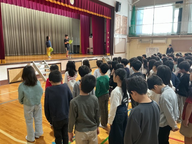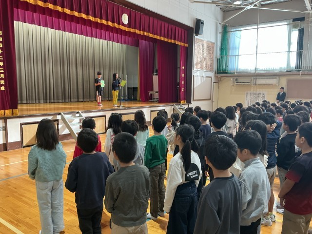 始業式では、代表児童の4年生が、しっかり決意を述べてくれました。