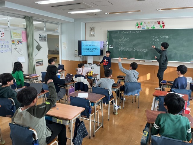 自分が調べた生き物をスリーヒントクイズにして、クラスのみんなに出題していました。