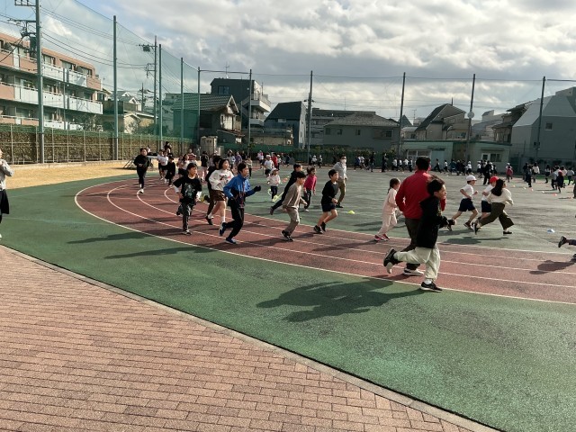 中休みに、みんなで元気に走ります。