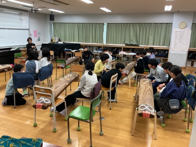 お琴体験。「さくら」のメロディーを一人一人、体験で弾いていました。