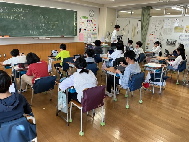 タブレット上に予想のシートを作成し、ロイロノートに提出してみんなで共有していました。