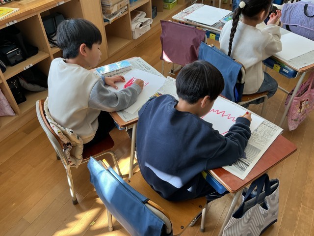 十分な筆圧でしっかりと輪郭を取っていました。「6年生へ」という気持ちが強く込められていると感じました。