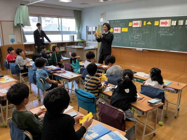 北海道の札幌市立発寒西小学校の須田祐右先生をゲストティーチャーとして迎え、算数の分数の単元の研究授業を行いました。