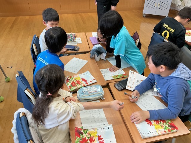 各自で考えた組み合わせを、次に班のかたちにして、友達と共有しあっていました。