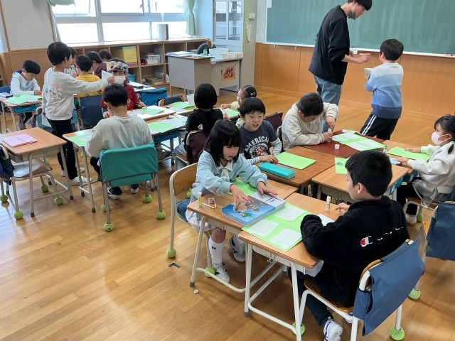 それをワークシートに貼っていきますが、自分が褒められているカードを読みながら、自然にみんな笑顔になっていきました。