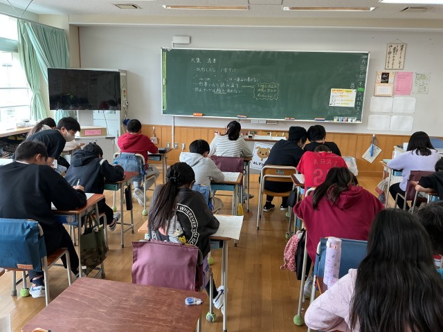 1組も2組も、しーんと張り詰めたような集中力で卒業文集の清書に取り組んでいました。