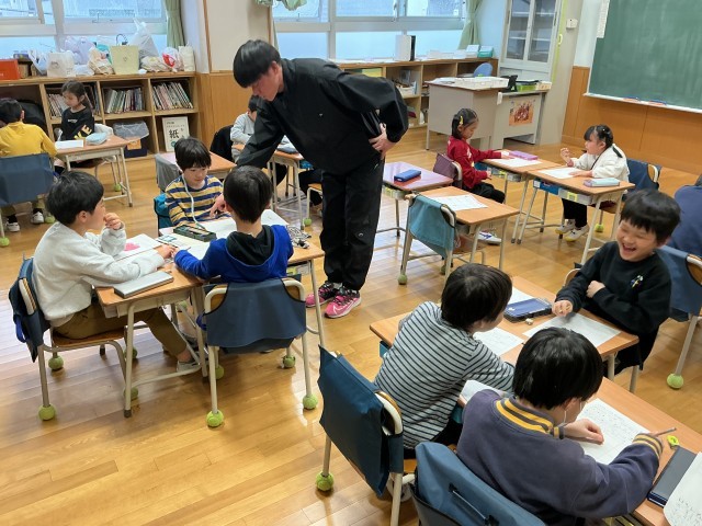 昨日出かけた、まち探検で、学習したことをワークシートにまとめ、さらに発表会しやすいように、班のメンバーで協力して原稿をそれぞれつくっていました。