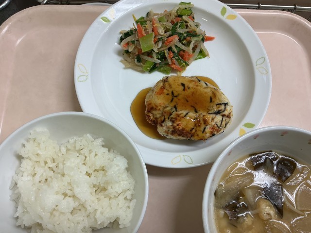 献立 ごはん おから入りつくね 野菜のゴマダレかけ わかめの味噌汁 牛乳