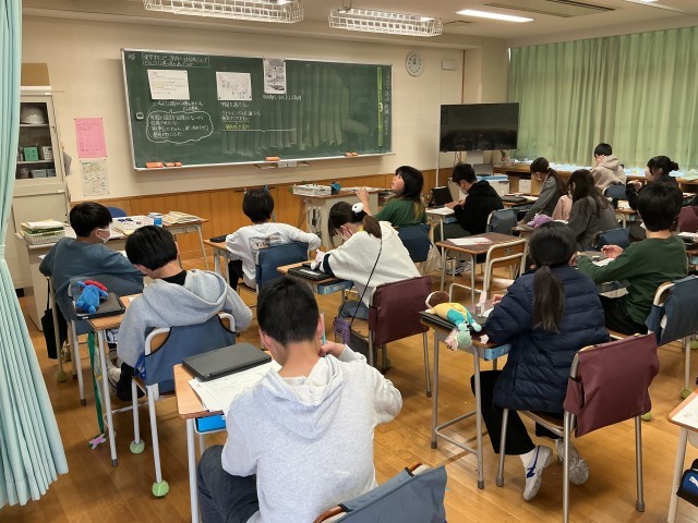 自分の考えを友達とも相談しながら、かつ集中してワークシートに取り組んでいました。