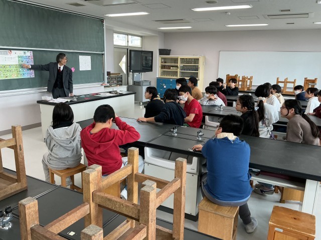 柴田治呂先生に、元素の仕組みや、元素周期表の意味などについて授業をしていただきました。