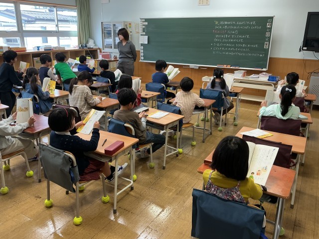 1組も2組を教科書配布とその記名を行なっていました。