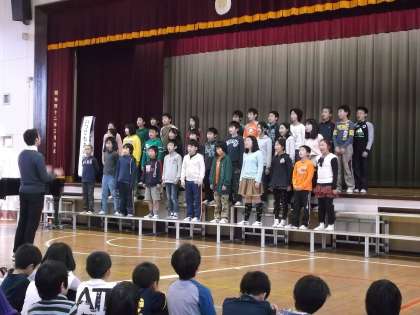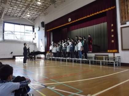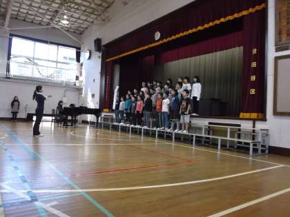 今日の5校時、音楽の授業の一環で、4〜6年生がお互いの歌声を聴きあいました。せっかくの機会ということで、1〜3年生も鑑賞しました。美しい歌声は、中里の誇りです。子どもたちはとてもよく頑張りました。4〜6年の担任も指揮者として、緊張して臨んでいました。