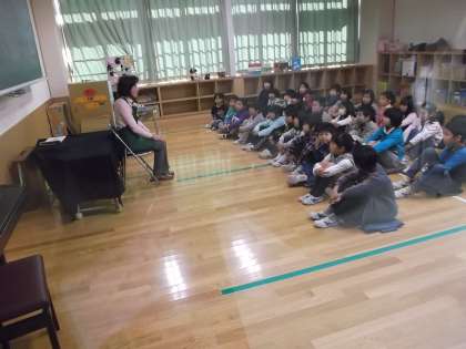 5年生が書き初めの練習を始めました。先生のアドバイスを守りながら、集中して筆を進めていました。下馬図書館から、出張してくださり、1,2年生が読み聞かせを楽しみました。話に入り込んでいる顔がたくさん見られました。