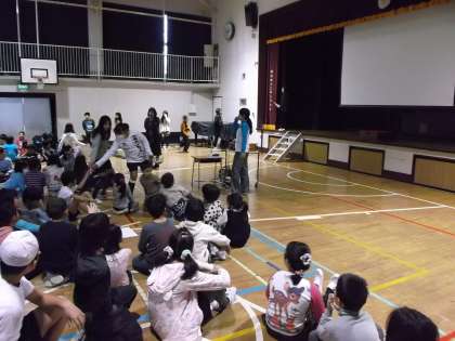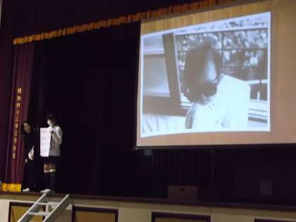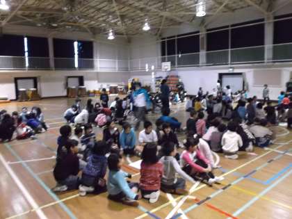 今日の児童集会は、縦割り班対抗で、クイズを行いました。教員の小さな時の写真と、好きだった遊びや食べ物をヒントに考えていく問題でした。かわいい写真がたくさん映し出され、ほんわかした雰囲気になりました。途中、一昔前の遊び道具(たとえばローラースルー・・・など)が紹介されると、子どもたちより、教員同士の方が盛り上がった場面もありました。