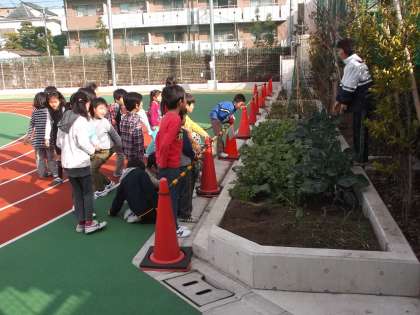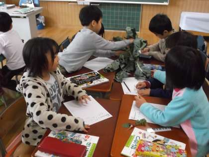 2年生は、ブロッコリーとカリフラワーを収穫し、教室で記録をまとめていました。子どもたちの頭ほどに育っていて、みなびっくりしていました。