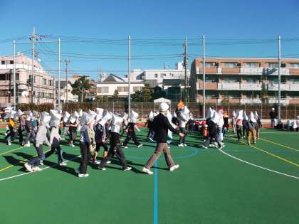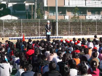 これまでの積み重ねがあり、子どもたちは、「お:押さない、か:かけない、し:しゃべらない、も:もどらない、ち:ちらばらない」の約束をしっかり守って、すみやかに校庭に集合することができました。さすが、中里小の子どもたちです。