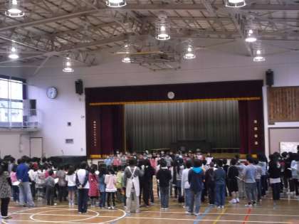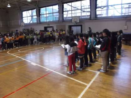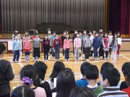 今日は詩の朝会でした。3年生が中心となって、全校で声を揃えました。