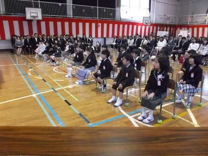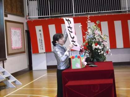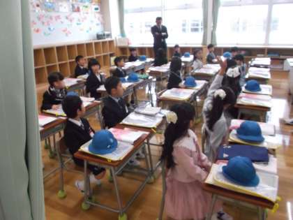 入学式では、新一年生に「優(やさ)しさの種」「知恵(ちえ)の種」「元気(げんき)の種」の3つの種を心に届けるメーセージを送りました。