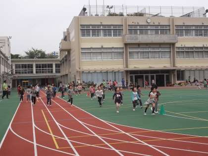 今年度初めての朝マラソンでした。1年生を迎える会を昨日終えた1年生も、担任の先生と準備運動をして、参加しました。