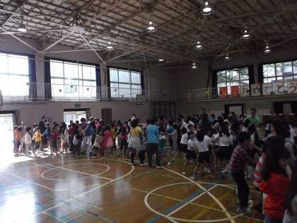 今年度最初の音楽集会でした。今月のうた「にじ」を1年生から6年生まで全員で歌いました。元気いっぱいの歌声が体育館に響きました。そのあと、楽しい手遊びダンスをしました。