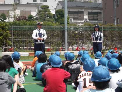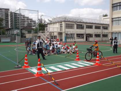 2,3校時は、世田谷警察の方にお世話になり、3〜6年対象の交通安全教室を行いました。おもに、自転車の安全な乗り方について、確認しあいました。自転車を運転していると、加害者にもなってしまいます。加害者にも被害者にもならないよう、また、交通事故にあわないでほしいと思います。