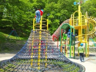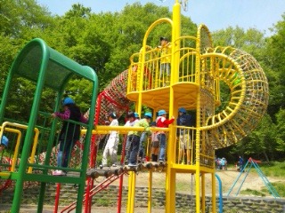 二段滑り台やネットコンビネーションなどの遊具を使って、元気いっぱいに遊んでいます。