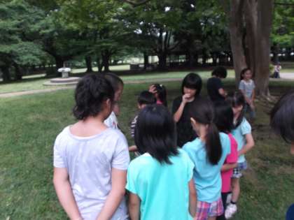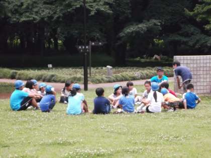 晴天の中、砧公園に全校なかよしタイムに行ってきました。たてわり班で遊び、たてわり班でお弁当を食べました。午後は、学年ごとに遊びました。