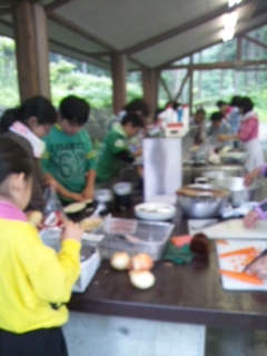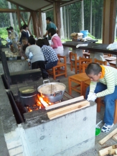 川場の自然の中で、飯盒炊飯とカレーを作りました。自分たちで作った夕食は、とても美味しく、食が進みました。