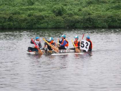 今年度は、PTAの方々が、計画的に製作を進め、昨年度より速くスピードのでるいかだにしようと、子どもたちも作る段階から、協力して参加することができました。