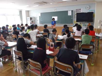今日は、6年生が作品発表会を行っていました。それぞれ自分の工夫したところを発表し、拍手をしあっていました。