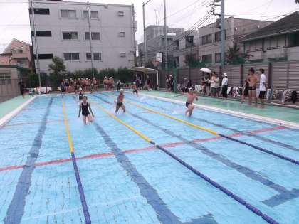 最後に、水深を浅くして、学年ごとのかけっこを行いました。これもとても楽しそうでした。